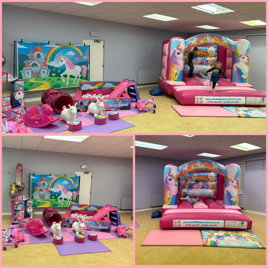 But the fun doesn't stop there! Our Unicorn Package also includes a ball pit with colorful balls, a slide for some exciting sliding adventures, a rocker for endless giggles, soft play shapes for building and playtime, a tunnel for crawling fun, and four ride-on toys for extra entertainment.